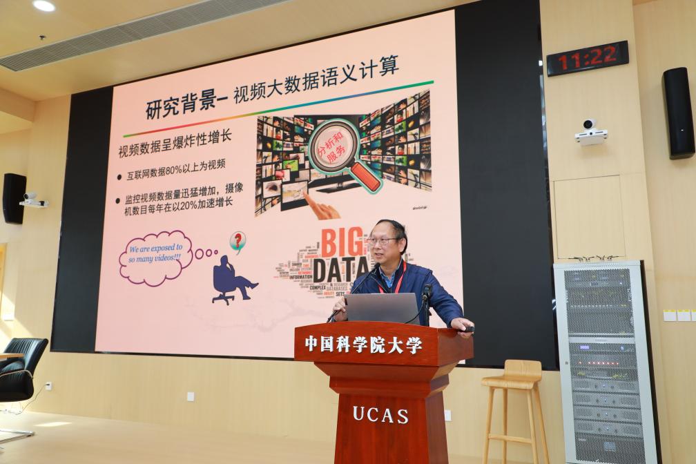 近日正在京举行的第七届中国立异成长高峰论坛上,中国科学院从动化研究所研究员卢汉清展现的智能图像手艺。